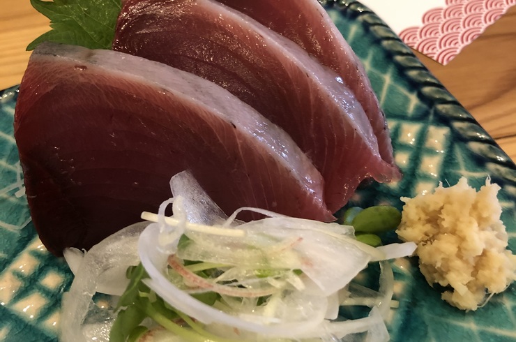 本日のお造りはメジマグロ、真鯛、勘八、白いかの4種類です。