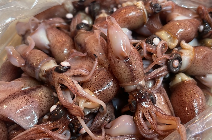 さて、休み明けの本日は長崎からスマカツオ、能登から真鰯、富山から大きなホタルイカ、下関から天然とらふぐ、鹿児島からそら豆など。