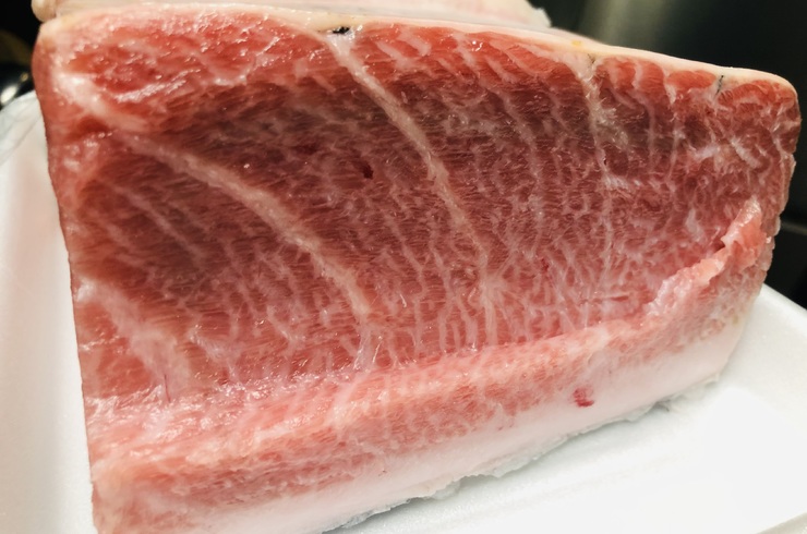 ウネスは下アゴからお腹にかけての脂身とその内側の赤身肉の部分。