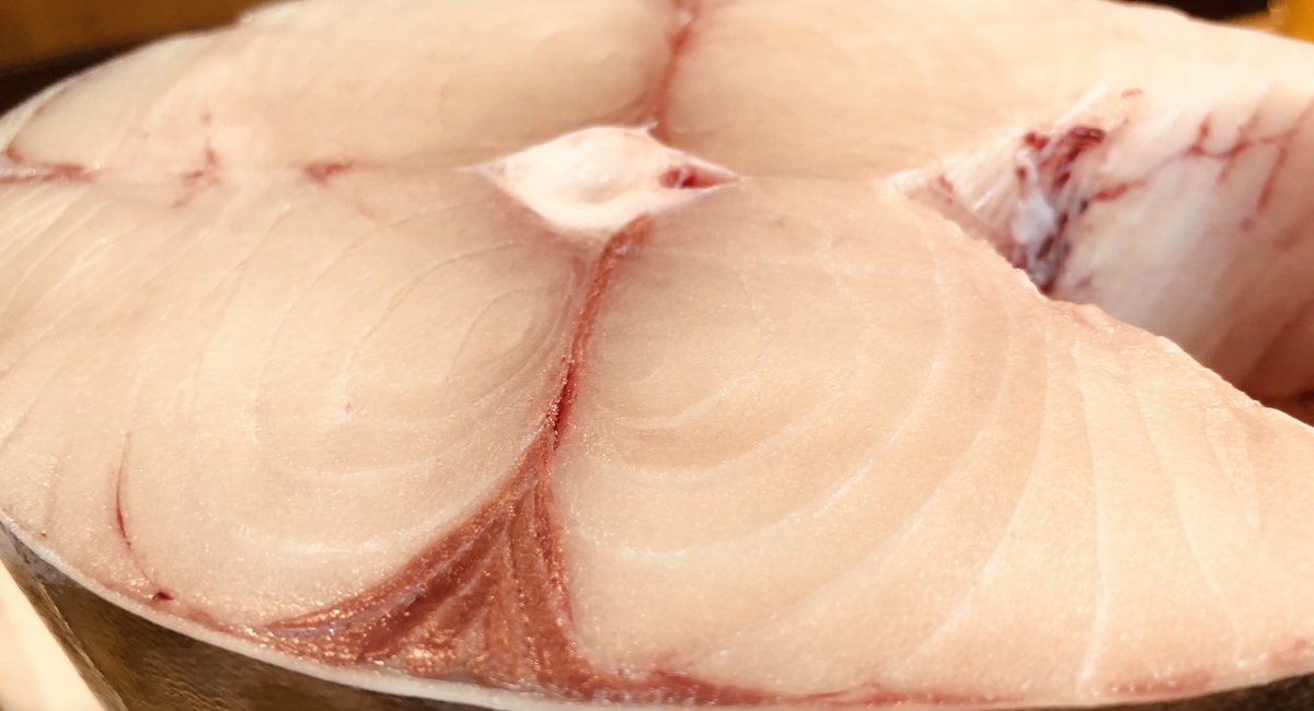 260kgの大物、腹側の脂のあるところですが赤身も最高です。
